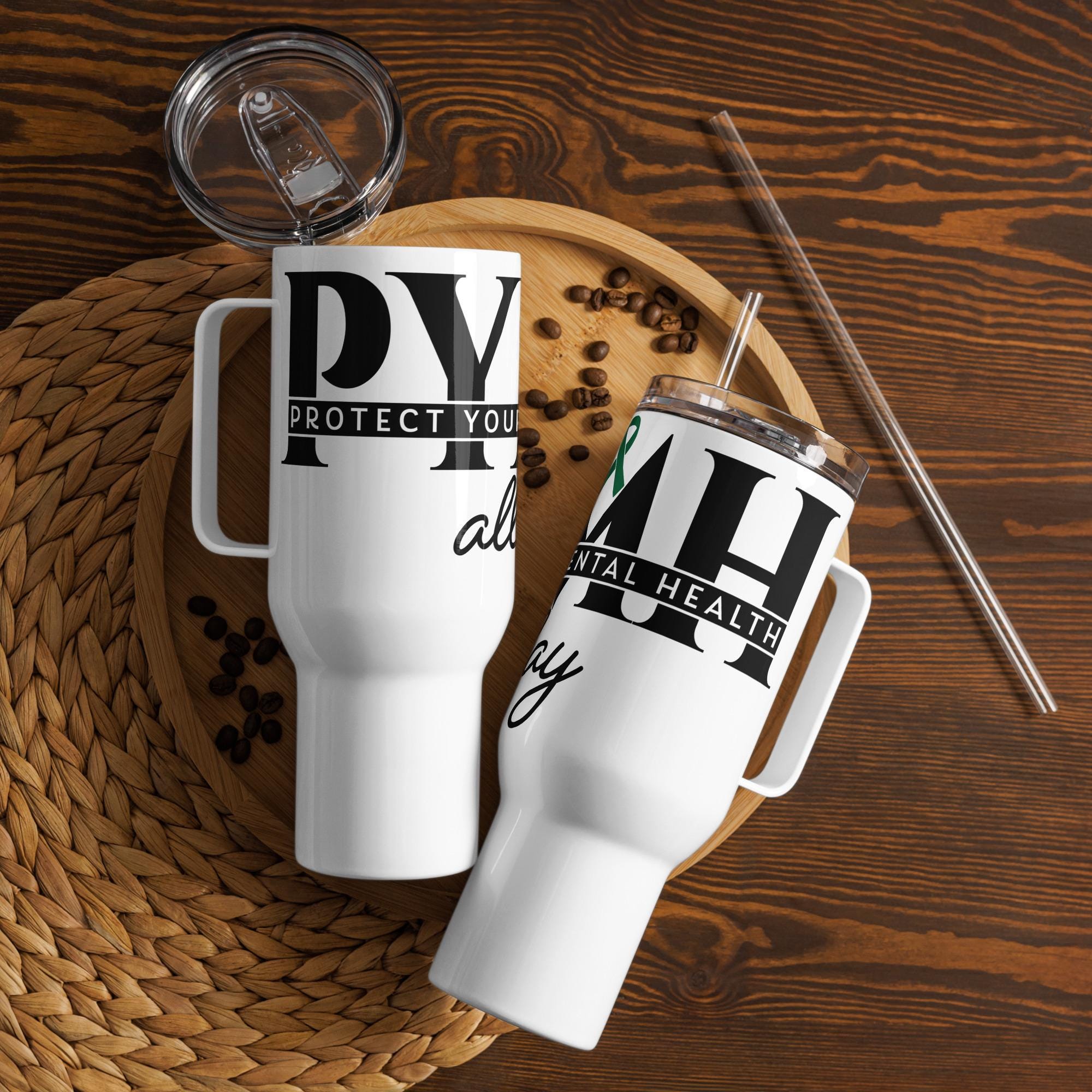Remind yourself and others to PYMH (Protect Your Mental Health) with this clean, minimalist travel mug designed for daily grounding. Perfect for coffee, tea, and quiet moments of self-care, it makes a thoughtful mental health awareness gift, mindfulness reminder, or positive quote travel mug for anyone who values wellness and intentional living. Simple, meaningful, and ready to inspire every single sip.